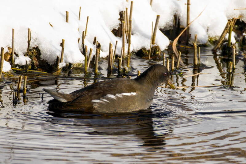 waterhoen langs sneeuwsloot
