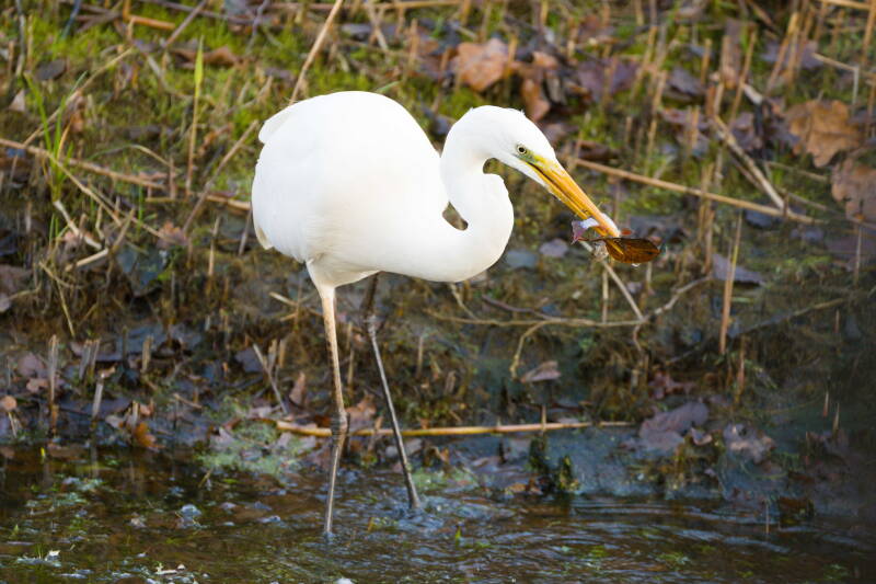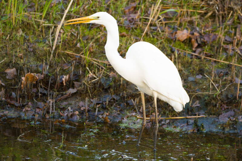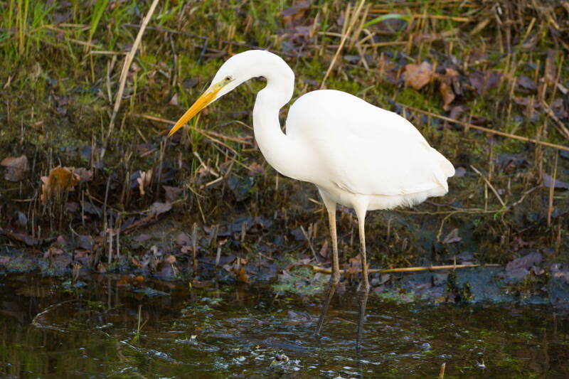 zilverreiger in herfstsloot