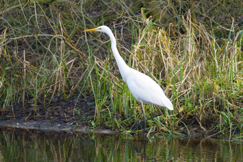 zilverreiger in herfstsloot